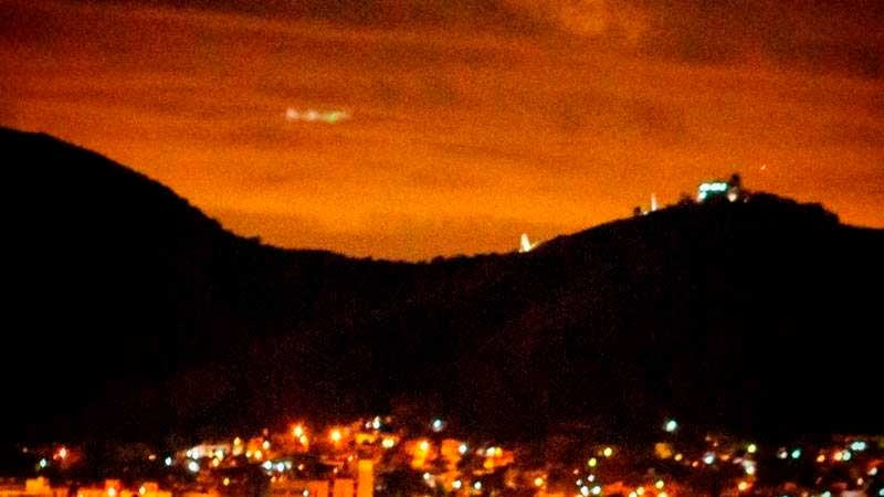 «Как вы можете видеть, это НЛО, летящий вблизи Серро-де-ла-Аэросилья с тремя огнями на его структуре».
