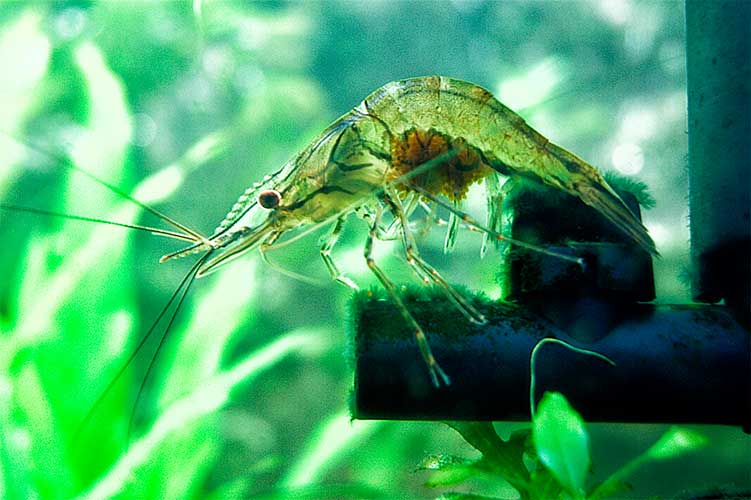 Сначала самка креветки вынашивает оплодотворенную икру в своем брюшке. Самки могут носить достаточно крупные, диаметром до 1,5 мм, яйца в течение 3-4 недель (в зависимости от температуры воды).