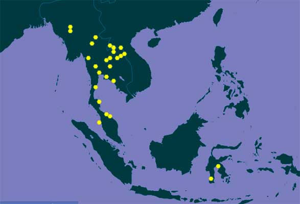 Азиатская Стеклянная креветка проживает в дикой природе только в реках Таиланда и Бирмы, сильно обогащенных кислородом.