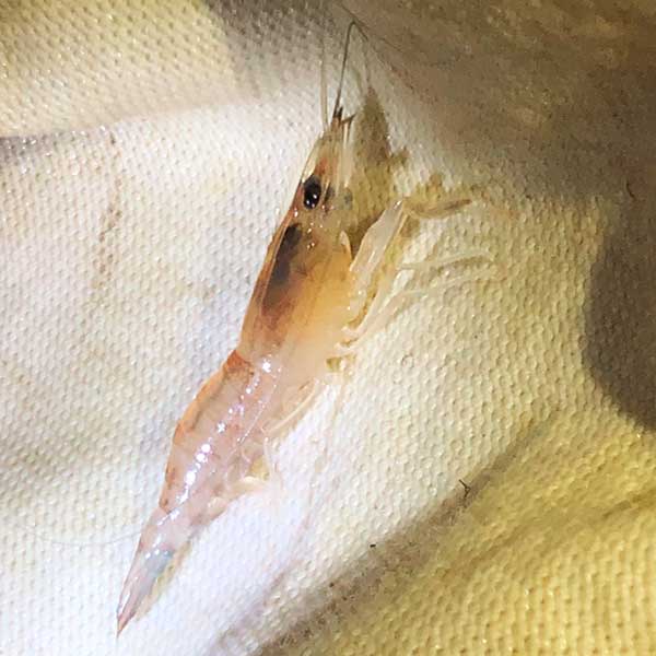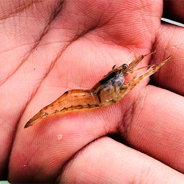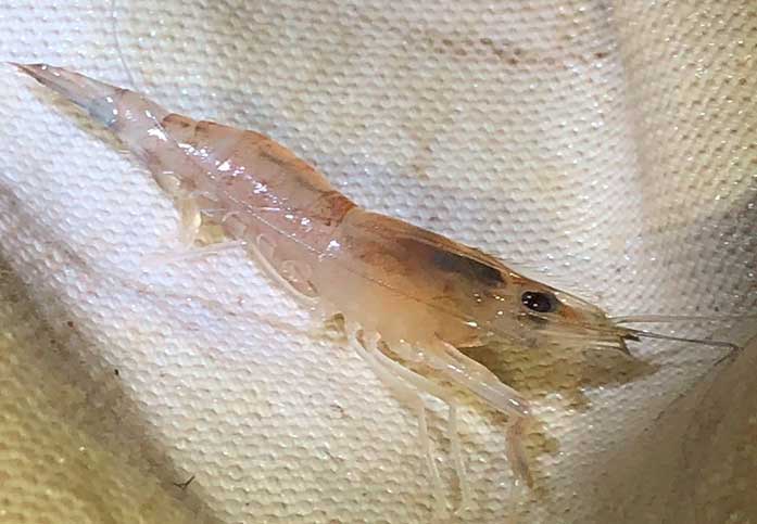 Macrobrachium Lanchesteri имеет полностью прозрачное тело, лапки и усы.