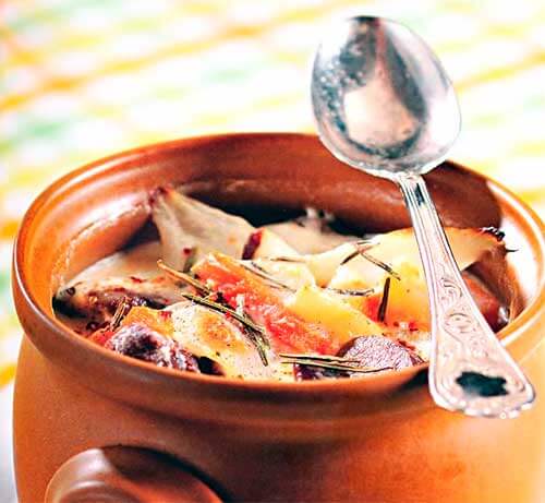 Разлейтесь по горшочкам с мясом и прогрейте в разогретой до 200 о С духовке 10 минут.