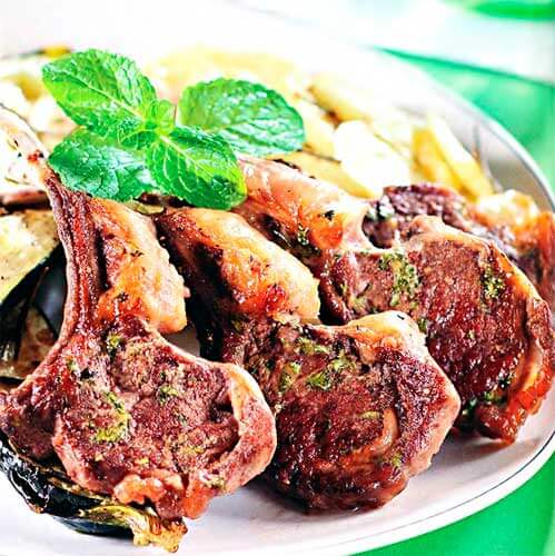 Баранья корейка в горчично-мятном соусе с овощами