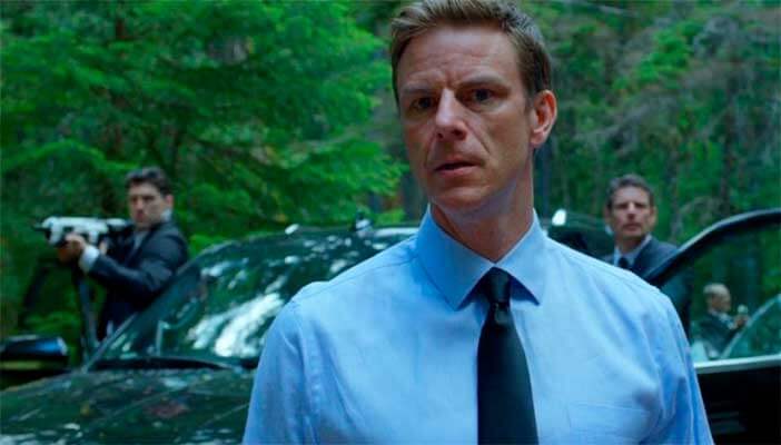 Они убирают имплантант из руки Сары, а люди в черном окружают хижину.
