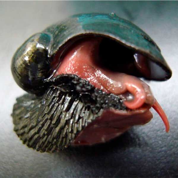 Этот брюхоногий моллюск Сhrysomallon squamiferum, который одет в металлическую броню, — составная часть флоры и фауны Индийского океана — единственный многоклеточный организм на земле, включивший в состав своего скелета соединения железа.