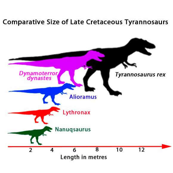 Тираннозавр Рекс жил от 68 до 66 миллионов лет назад, а многие его знаменитые родственники — такие как Горгозавр и Альбертозавр — жили около 75 миллионов лет назад. Динамотерорр (Dynamoterror) и его родственник Литронакс (Lythronax) из Юты ещё древнее, им около 80 миллионов лет.