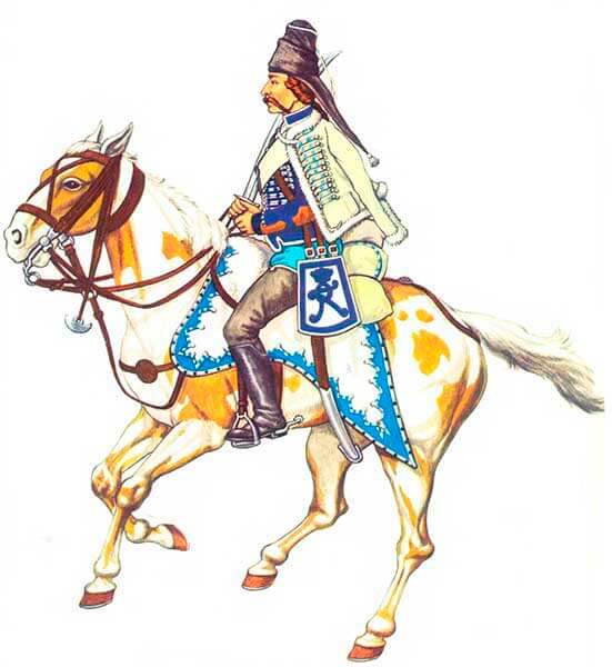 Гусары впервые появились в южной части Венгрии и храбро сражались с турками. Венгерские гусары также служили в имперских войсках Габсбургов, а также в армиях других зарубежных стран. Эти войска всегда славились своим мужеством, отвагой и интуицией, и поэтому совсем не странно, что вскоре они привлекли внимание молодого Фридриха Великого, значение которого в военной истории, несомненно, имеет первостепенное значение. Он стал чрезвычайно известен своим мастерским руководством многими кампаниями прусской армии, которые в конечном итоге стали образцом для многих других европейских государств.