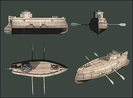 Известно лишь, что это было деревянное судно длиной примерно 6 метров, напоминавшее обычный морской бот, но снабженное выпуклой крышей и обитое медными обручами («для крепости»).