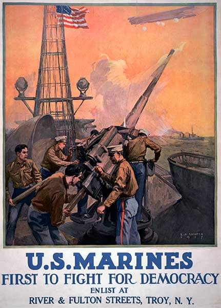 Когда 17 апреля 1917 года США вступили в Первую мировую войну, объявив войну центральным державам, корпус морской пехоты был, вероятно, американской службой, лучше всего подготовленной к войне.