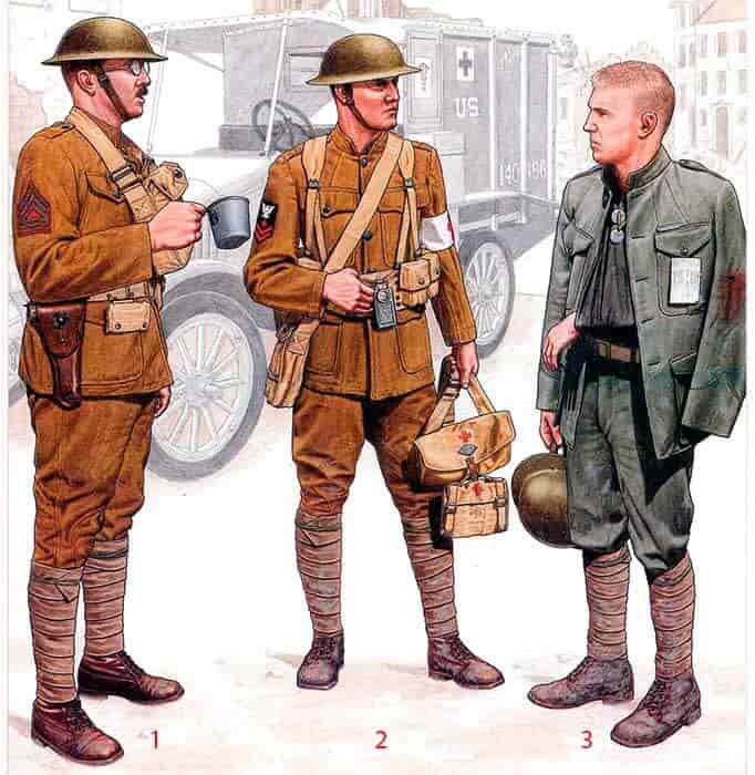 Весь медицинский персонал в подразделении морской пехоты был предоставлен ВМС США; эти военно-морские специалисты служили на передовой в ротах морской пехоты, а также в пунктах медицинской помощи. Они использовали то же сочетание униформы P1917 и AEF M1912, что и морские пехотинцы; знаки отличия на воротнике не носили.