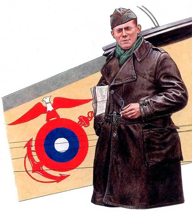 В воздухе пилоты морской пехоты носили французские или американские кожаные или парусиновые пальто и шлемы.
