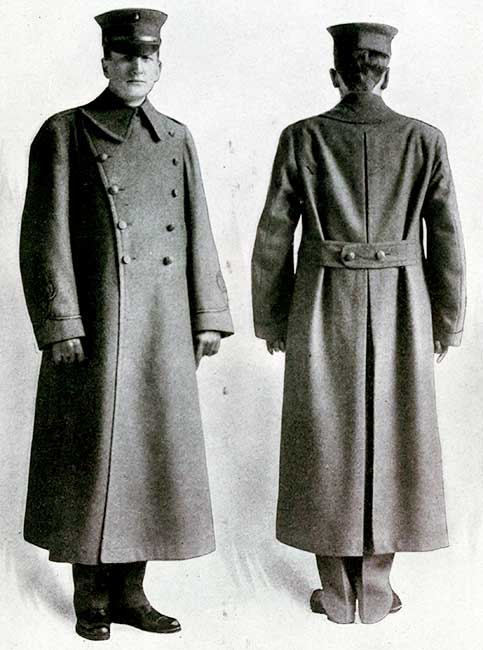 Офицерский дождевик или накидка шился из резиновой ткани или водонепроницаемого материала, свободного покроя, чтобы соответствовать фигуре.