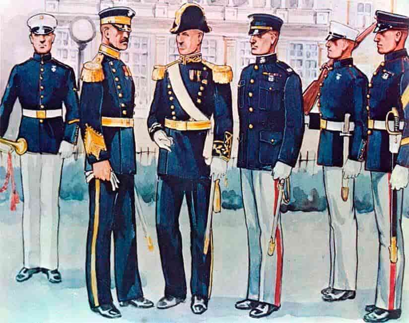 Как и во всех армиях той эпохи, парадная и полевая форма морской пехоты была по существу одинаковой: просто добавлялось полевое снаряжение и оружие к основной форме.
