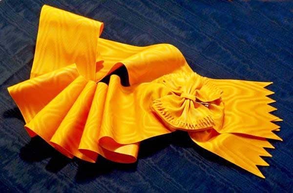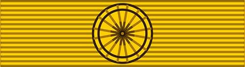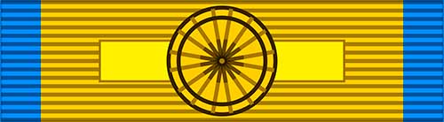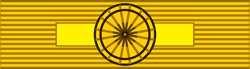 Лента ордена — шелковая атласная, лимонно-жёлтого цвета.