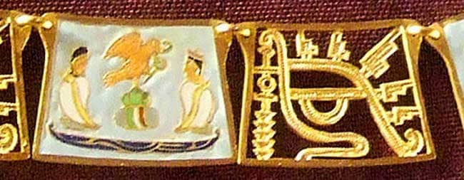 Цепь состоит из тридцати чередующихся сегментов: на одном — изображение ацтеков с орлом, на втором — ацтекский символ доколумбовой эпохи .