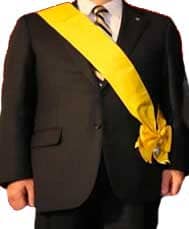 Носится через правое плечо, знак ордена крепится на уровне бедра.