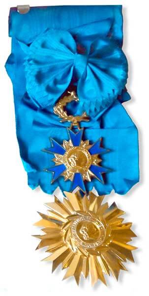 Звезда и лента Большого креста Национального ордена за заслуги.