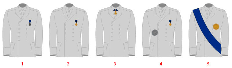 Для ношения при повседневной гражданской одежде предусмотрены розетки из орденской ленты (диаметром 6 мм), а при мундирной одежде — планки.