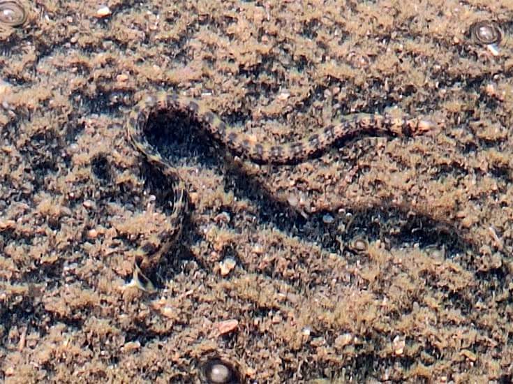 Грудных и брюшных плавников нет, и плавает она, волнообразно изгибаясь, подобно ползущей по земле змее.