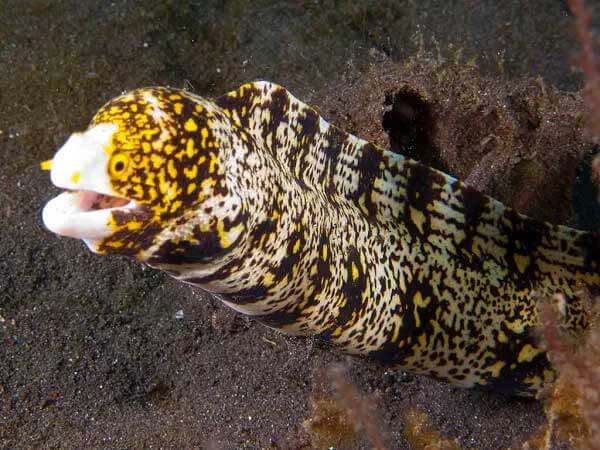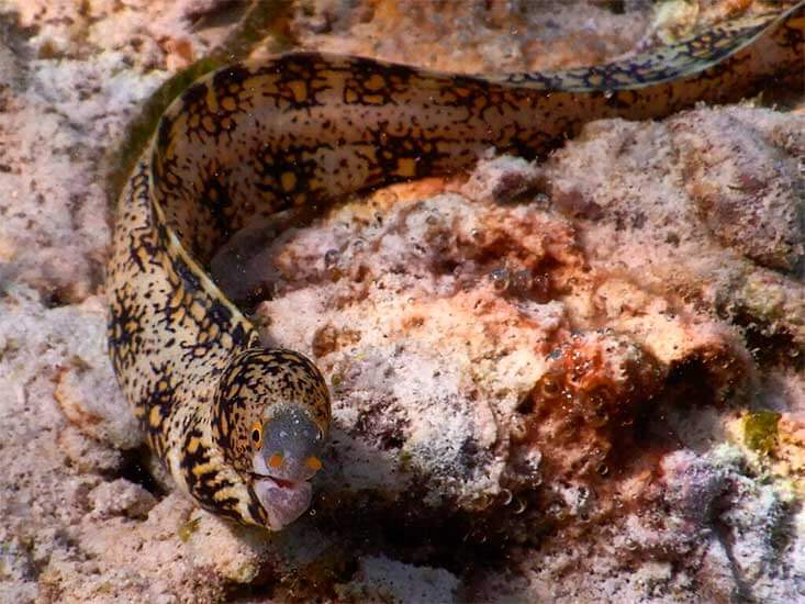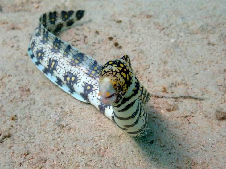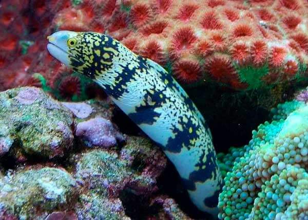 Рыба-ехидна, снежная мурена, белорылая мурена, мурена-ехидна звездчатая (Echidna nebulosa, Snowflake Eel) — одна из самых красивых и в то же время самых маленьких представительниц семейства хищных Мурен.