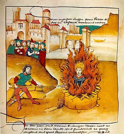 Гус предстал перед судом за свою позицию и другие высказывания, которые он якобы сделал, и был сожжен на костре в 1415 году. Его смерть спровоцировала гуситские войны 1419 — ок. 1434 года между гуситами и силами, верными католической церкви.