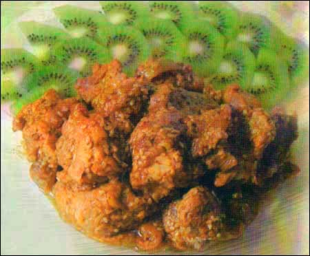 1. Свинину нарезаем небольшими квадратными кусочками «на один укус», обваливаем в муке и обжариваем.