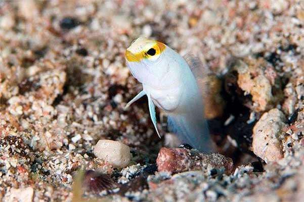 Большеголовы исключительные домоседы – они часами могут находиться у себя «дома», не высовываясь наружу. Убедившись, что поблизости нет опасности, они понемногу начинают выглядывать из своего уютного укрытия. Потом парят вертикально над отверстием или рядом с ним. Но как только они почуют какое-либо движение – будь-то рыба или дайвер, тут же скрываются у себя в норке.